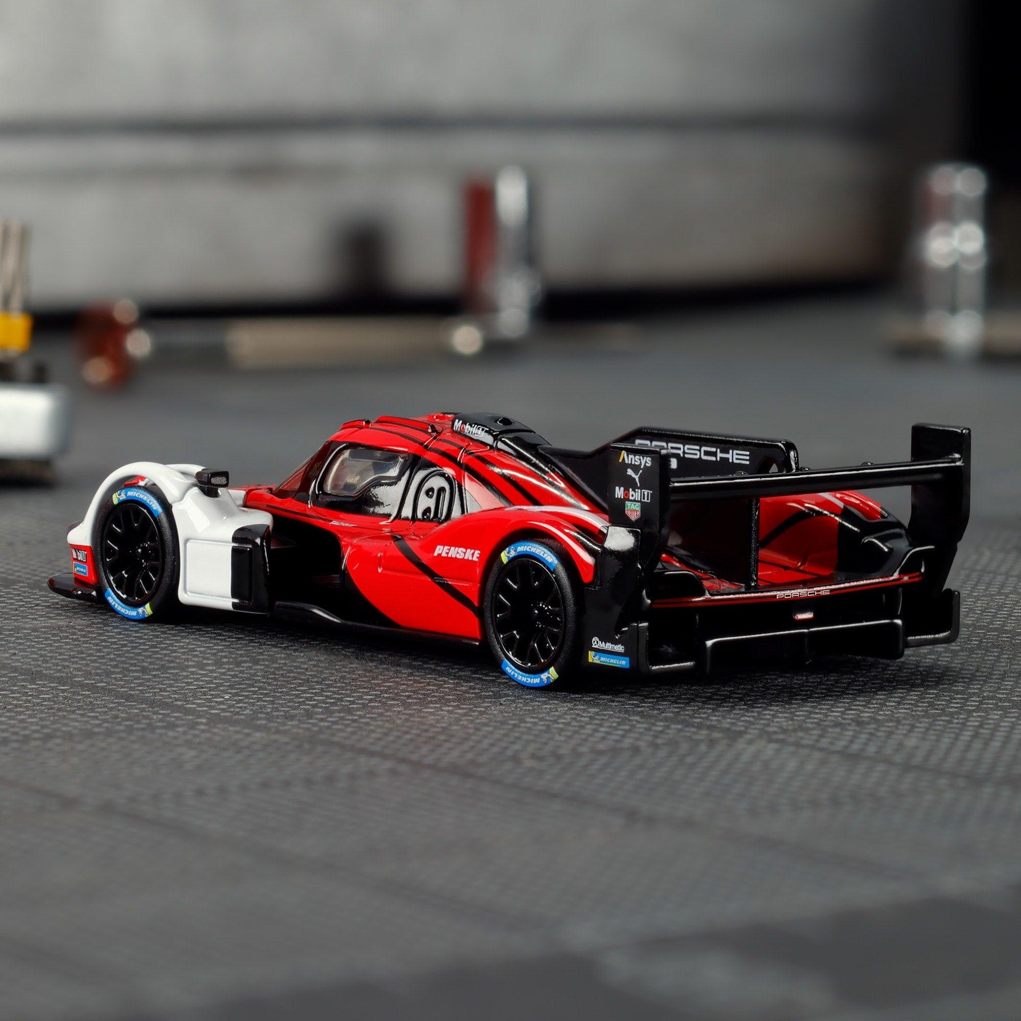Porsche 963 – це гібридний гіперкар, створений для перегонів на витривалість. Частково натхненний легендарними гоночними Porsche 1980-х, 963 поєднує класичні лінії з проривними показниками продуктивності завдяки 4,6-літровому двигуну V8. Ця надреалістична модель представлена у ефектній напівглянцевій гоночній лівреї з деталізованою кабіною.